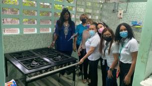Esta actividad se desarrolló entre el Ministerio de Salud a través de la región Metropolitana en alianza con el Hospital Santa Fe, en beneficio de la Escuela Fe y Alegría en el corregimiento de Curundú. Este importante centro educativo recibió la donación de utensilios de cocina y de una estufa industrial, para el comedor estudiantil.