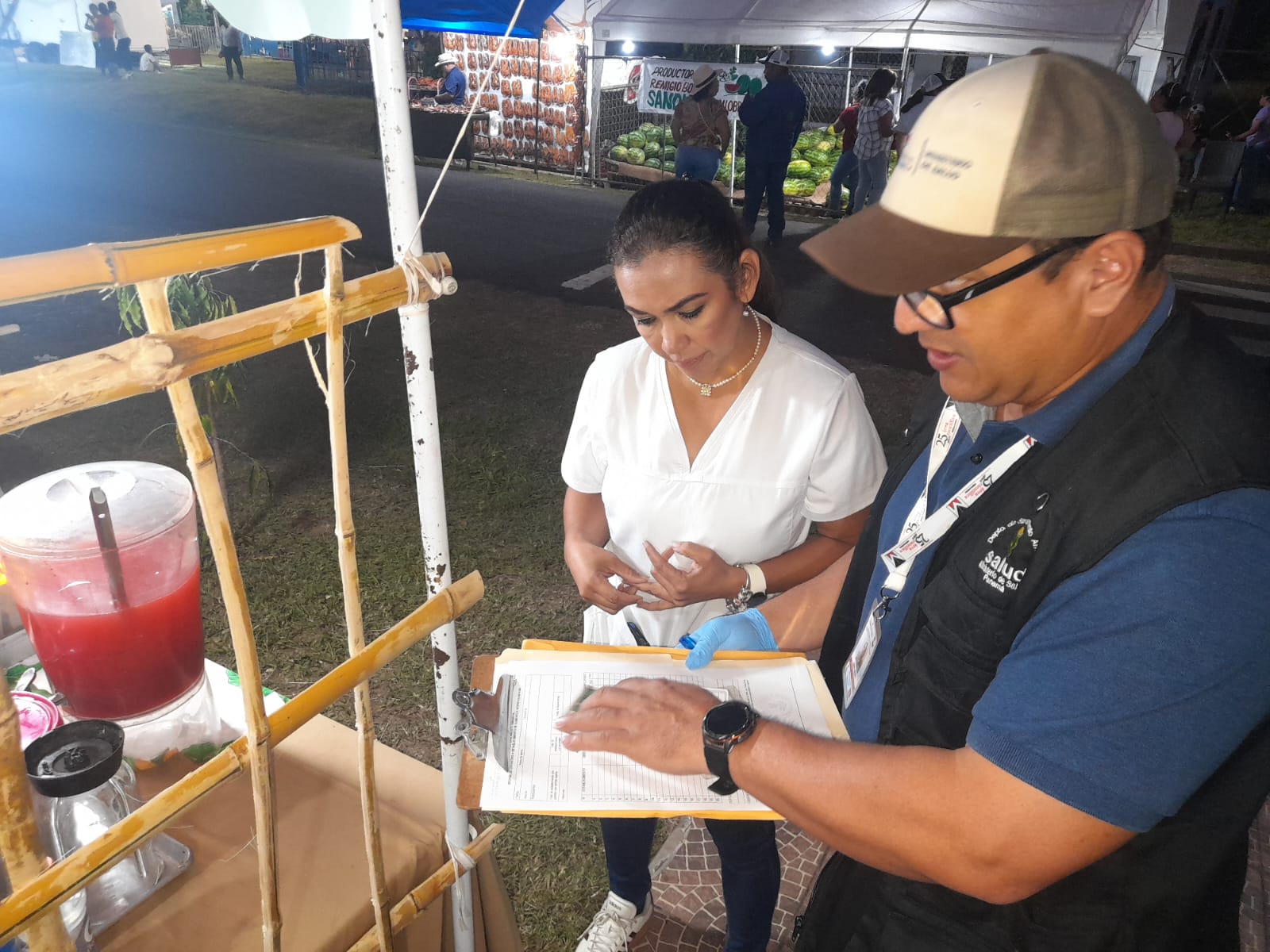 Con el objetivo de verificar el cumplimiento de las normas sanitarias y proteger la salud de la población, el Ministerio de Salud, a través del Departamento de Saneamiento Ambiental, realizó un operativo de inspección en los puestos de ventas transitorios y ambulantes ubicados en el marco de la Feria de la Sandía, en el distrito de Calobre, provincia de Veraguas.