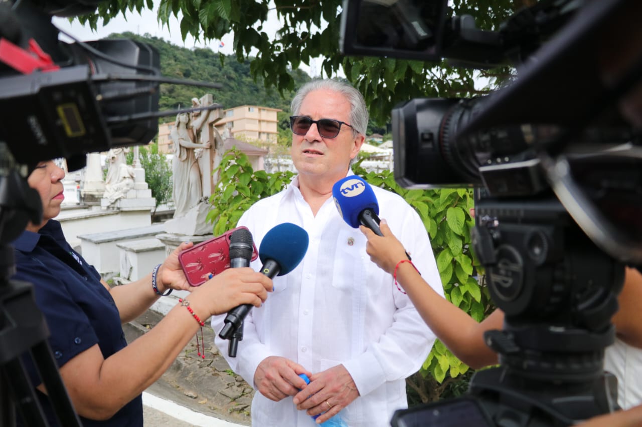 El ministro de Salud, Fernando Boyd Galindo y el viceministro de Salud, Manuel Zambrano Chang, acompañaron al presidente de la República, José Raúl Mulino, en los actos protocolares en el cementerio Amador, para rendir homenaje a los próceres y mártires de la nación, hoy 2 de noviembre, Día de los Difuntos.