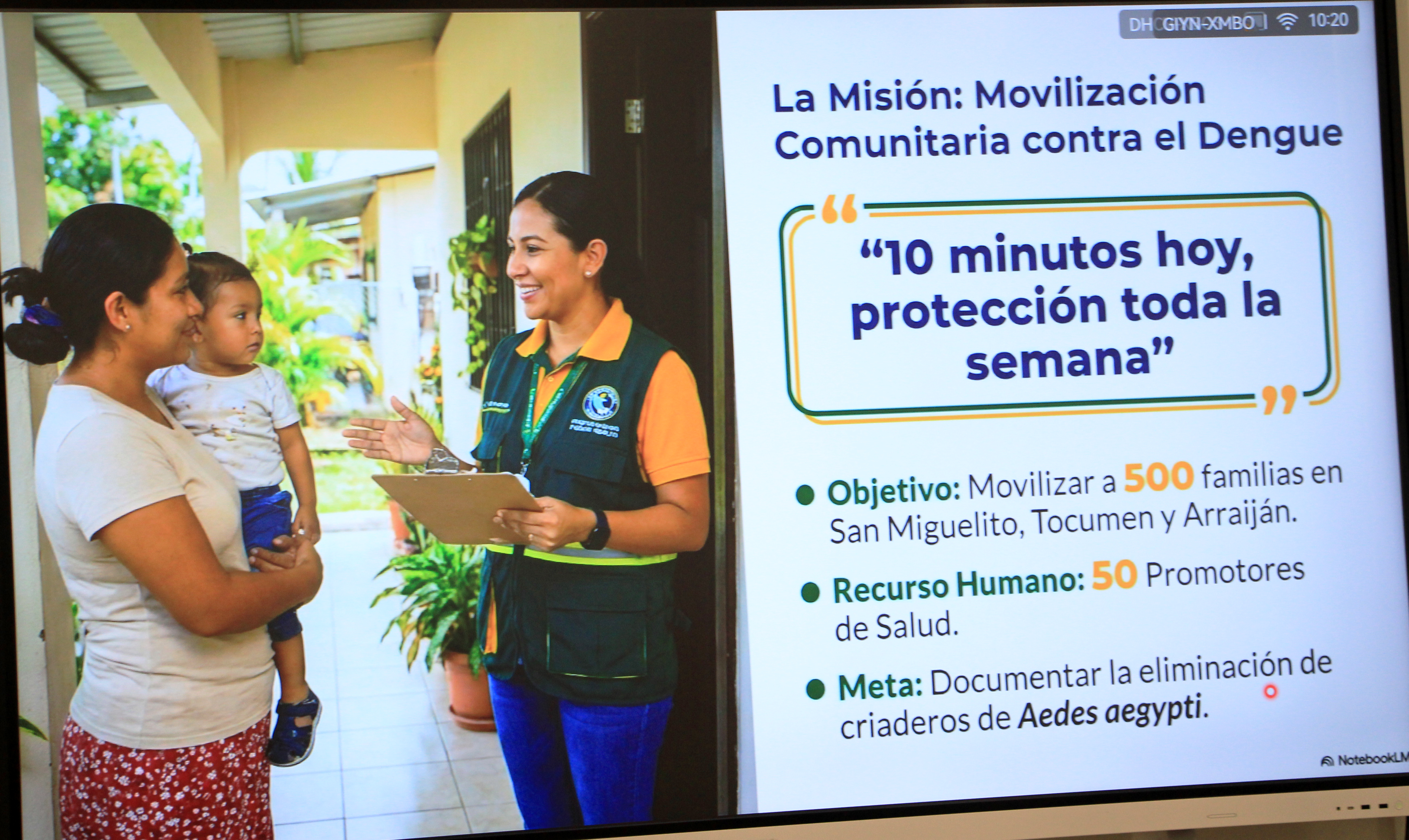 Durante el encuentro, el Dr. Pedro Sánchez, epidemiólogo de la Región de Salud de Panamá Este, presentó el informe epidemiológico actualizado y detalló las estrategias implementadas en esta región para contener la propagación del dengue, resaltando la vigilancia activa y la eliminación de criaderos como pilares fundamentales.