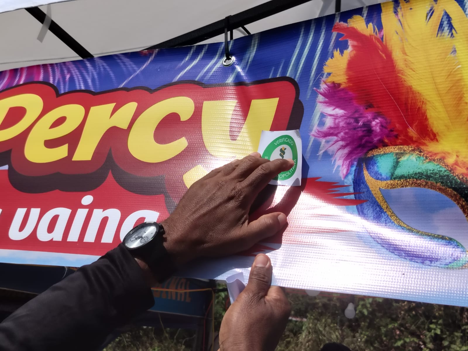 También, para un mejor control en la verificación de los puestos, colocaron un estiquer distintivo diario, que indica que el equipo de Salud Pública estuvo en su puesto.