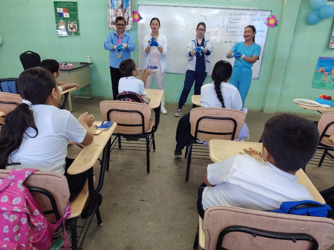 También participaron en la instrucción sobre lavado de manos la enfermera Silka Rojas, la nutricionista Sherly Fonseca y la educadora María de Pitti.