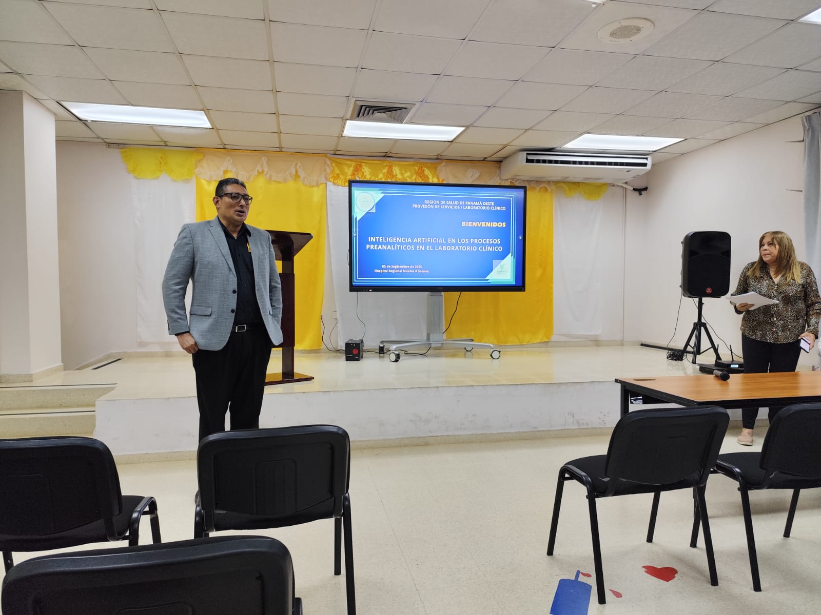 Oscar Price, jefe del Departamento de Laboratorio Clínico, llevó a cabo la docencia titulada “Inteligencia Artificial en los procesos preanalíticos del laboratorio clínico”, desarrollada en el auditorio del Hospital Nicolás A. Solano.
