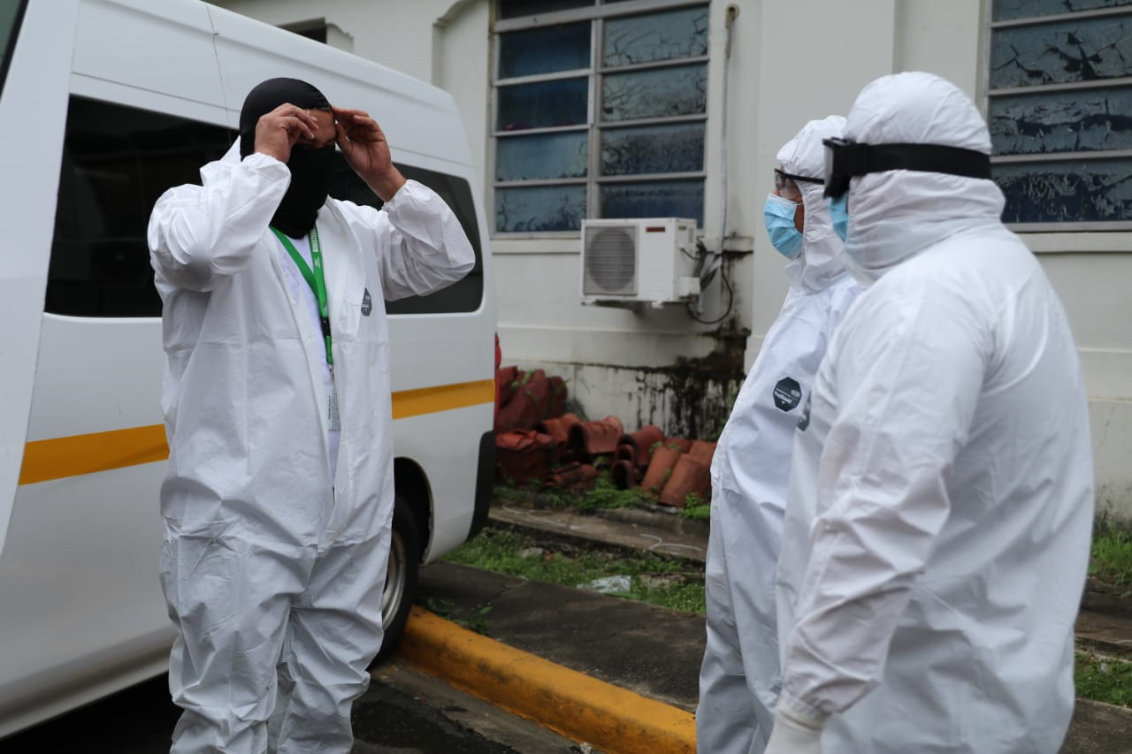 Contó que prepararse con el equipo de bioseguridad le toma entre 25 y 30 minutos, es lo que siempre ha hecho. El MINSA le ha suministrado su overol, sus guantes, gafas y mascarillas.