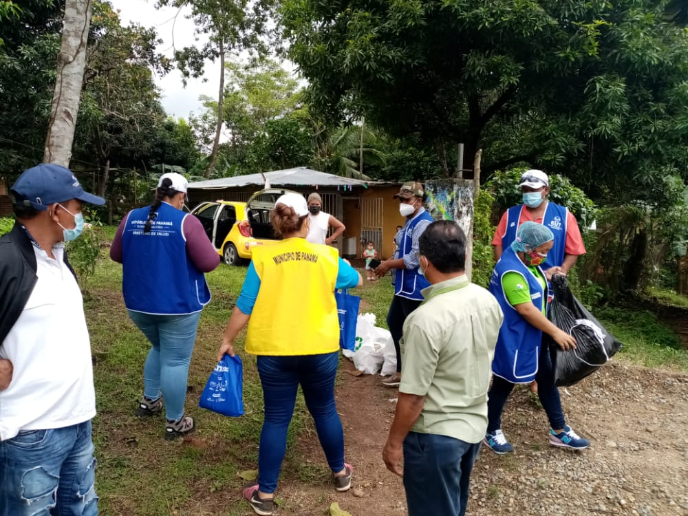En las comunidades de La Hugo Spadafora, Río Chico, 4 de noviembre, Hugo Henriquez, Brisas del Río, Paso Blanco y la Bendición el EUT del MINSA-Capsi de Las Garzas les entregó bolsas con alimentos, medicamentos, el Kits Protégete Panamá y material informativo sobre las medidas de bioseguridad, además de mascarillas reutilizables.