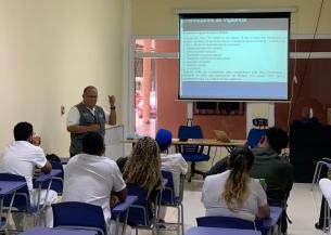 Abdiel Rodríguez coordinador regional de Salud Pública y Epidemiología, imparte docencia a médicos y a la vez brindando detalles de seguimiento de la situación del dengue en la provincia.