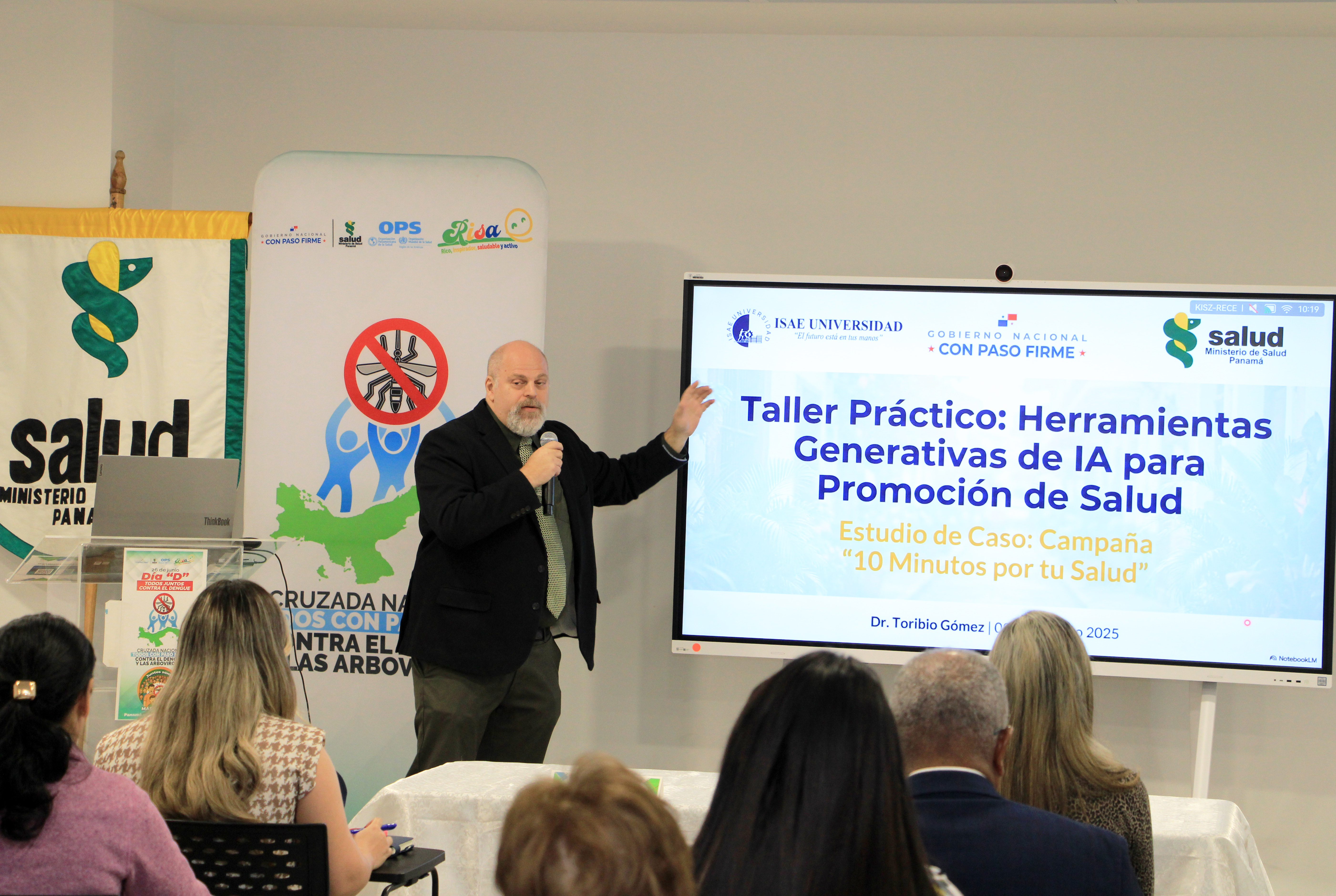 Durante el encuentro, el Dr. Pedro Sánchez, epidemiólogo de la Región de Salud de Panamá Este, presentó el informe epidemiológico actualizado y detalló las estrategias implementadas en esta región para contener la propagación del dengue, resaltando la vigilancia activa y la eliminación de criaderos como pilares fundamentales.