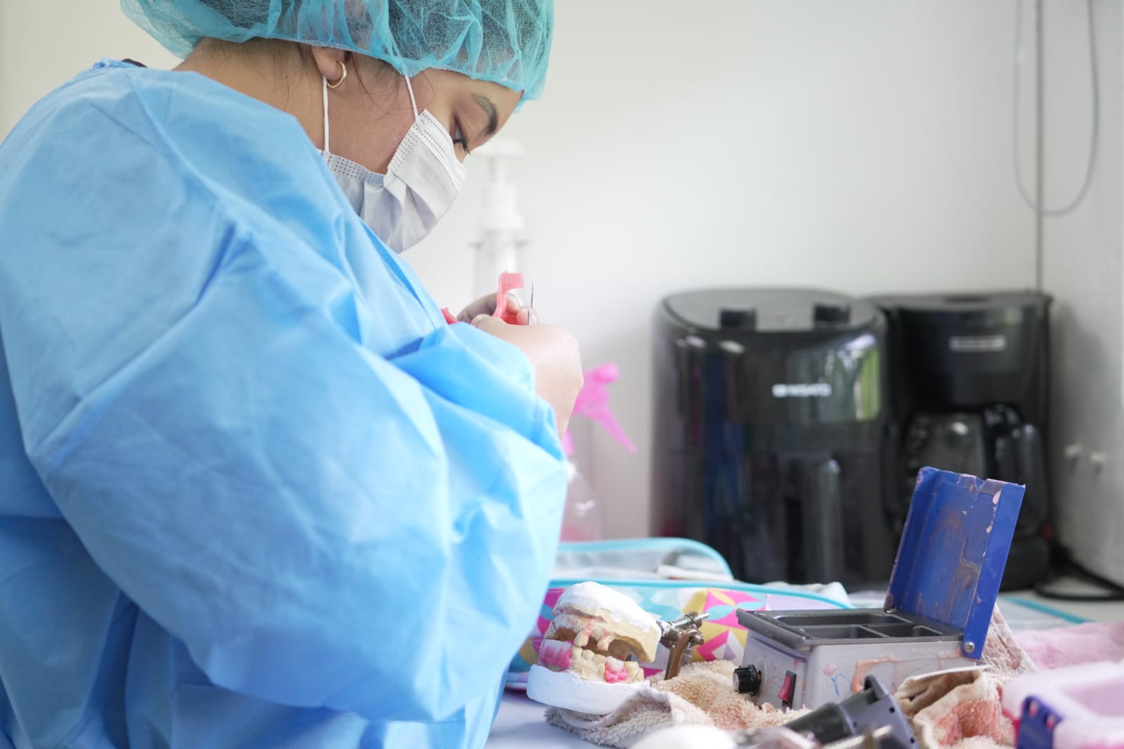 La elaboración de las prótesis dentales será realizada por estudiantes de la carrera de Técnico en Prótesis Dental de la Universidad Santander , bajo la supervisión de profesionales idóneos del Centro de Salud de Veracruz.