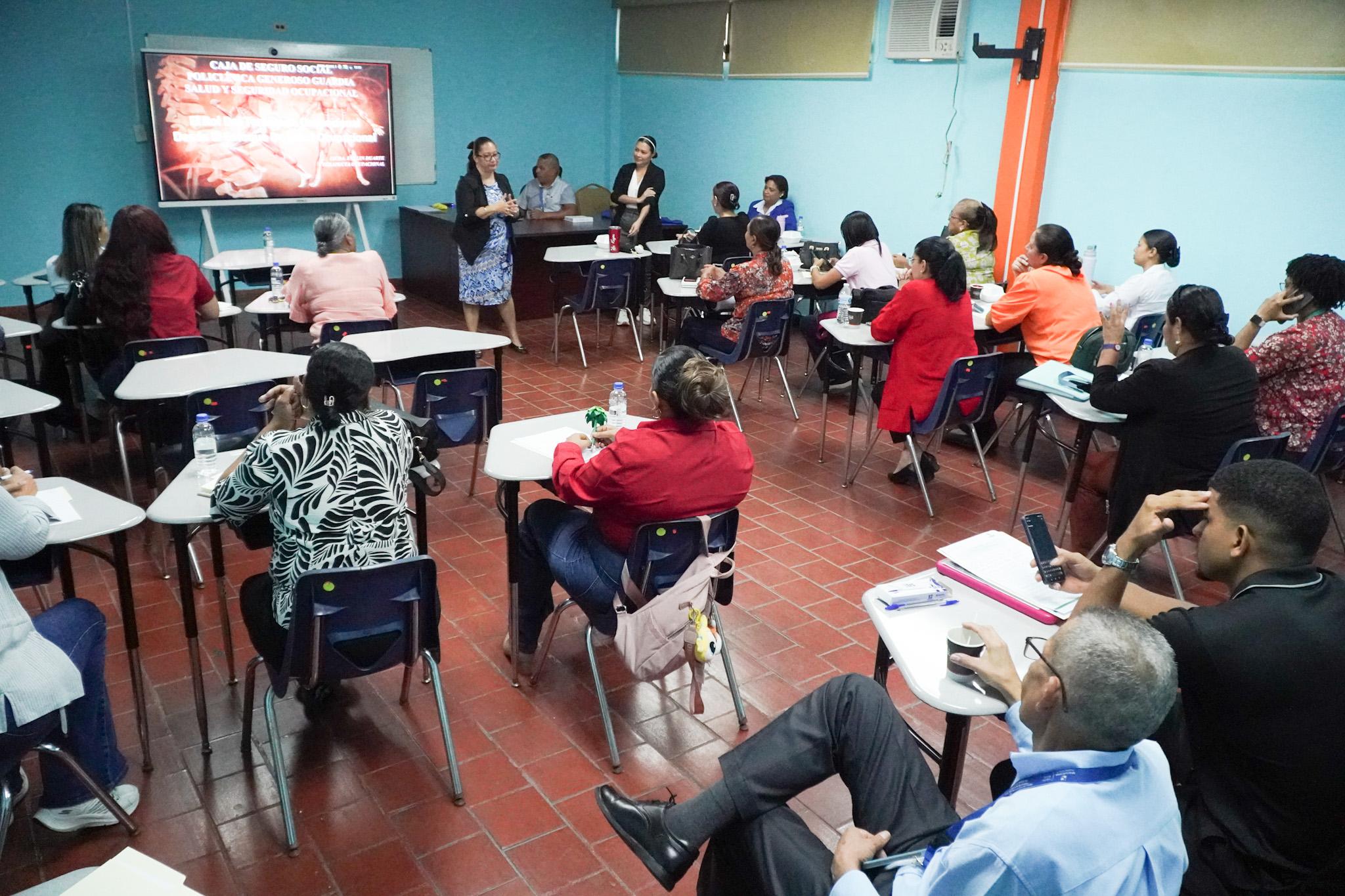 Funcionarios de la Región de Salud de Panamá Norte, especificamente jefes regionales y directores médicos de los centros de salud, acudieron a la capacitación de salud ocupacional organizada por el departamento de Recursos humanos e impartida por profesionales de la Policlínica Generoso Guardia de la Caja de Seguros Social.