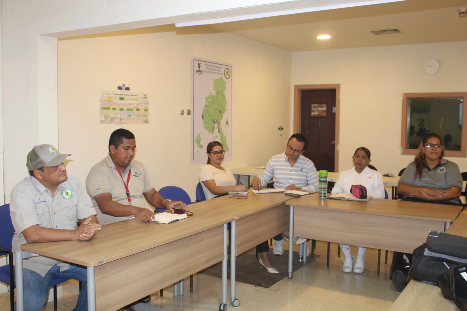 La actividad contó con la participación de Federico Armien y Madelen Cummingan, técnicos de la Oficina de Gestión de Riesgos y Desastres en Salud del Nivel Nacional. Ambos expositores abordaron temas clave como la preparación, la prevención y la capacidad de respuesta ante eventos adversos que puedan afectar el funcionamiento del sistema sanitario.