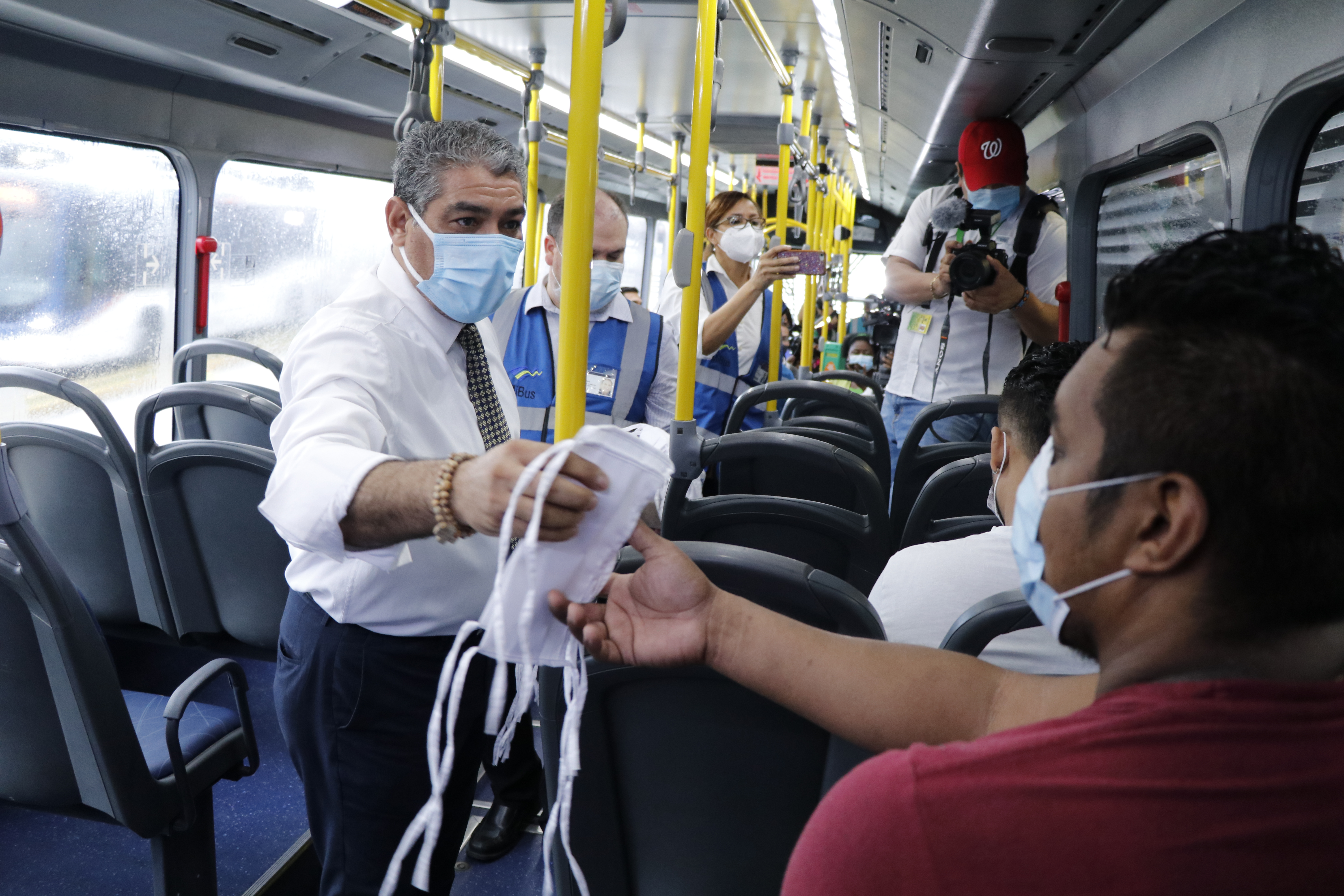 Incluso el ministro y los demás funcionarios se subieron a las unidades de transporte para entregar los insumos a los usuarios del transporte a quienes explicaron la importancia de mantener las medidas de higiene (mascarilla obligatoria, uso de alcohol y gel alcoholado), pero sobre todo mantener el distanciamiento física como acciones importantes para evitar la transmisión de la COVID-19.