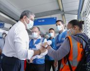 El ministro en compañía de Luis Campana, gerente general de Mibus recorrió la zona paga del Metrobus de la Plaza 5 de Mayo, donde con el apoyo de la doctora Gabriela Salazar, directora Nacional de Promoción de la Salud e Israel Cedeño, jefe de la Región Metropolitana de la Salud, entregaron mascarillas y gel alcoholado a los usuarios de este sistema de transporte.