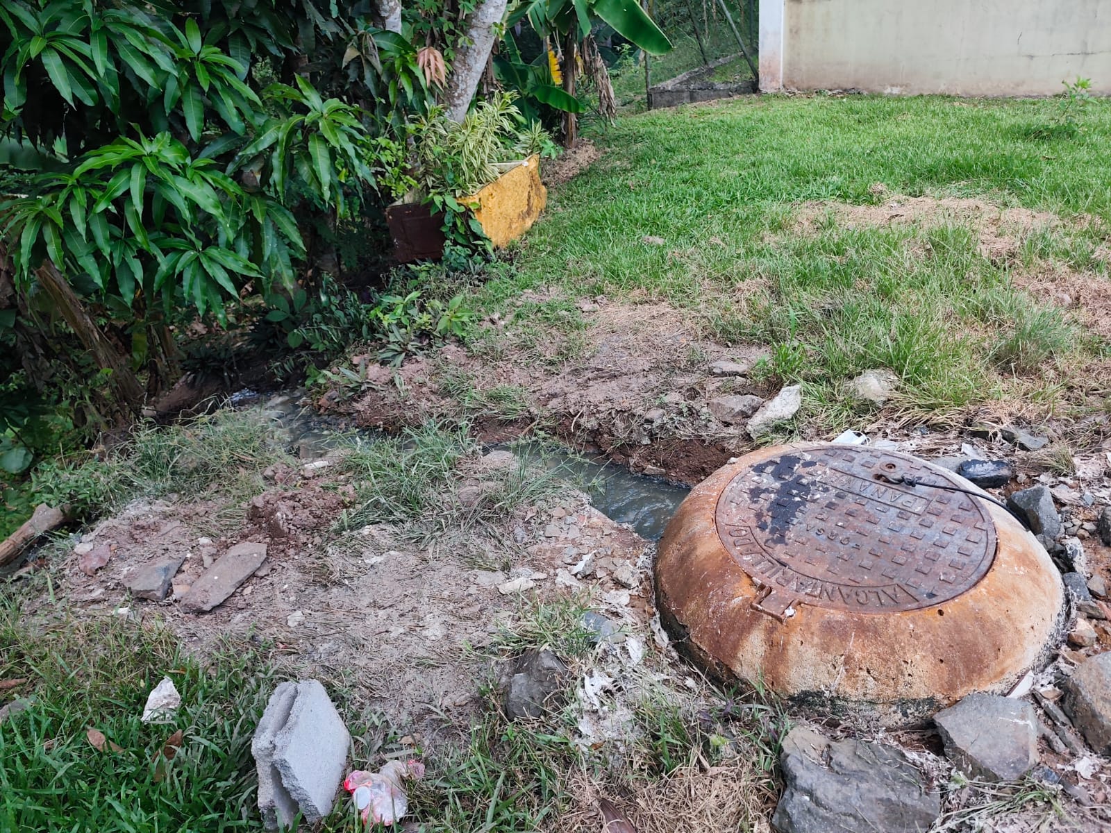 De acuerdo con lo observado, el manjol ubicado al final de la calle novena fue abierto como medida provisional para evitar que las aguas residuales regresaran a las instalaciones sanitarias de las viviendas cercanas. Sin embargo, esta acción ha generado un vertido de agua residual que se desplaza por escorrentía hacia el cauce del río.