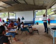 La capacitación fue brindada por Alejandro Yangües, asistente de salud del Minsa por medio del Centro de Salud de Escobal, quien les manifestó lo importante que también los adultos tengan su esquema de vacuna completo, al igual que los niños y niñas.