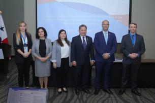 Participaron en la mesa principal: Manuel Zambrano, viceministro de Salud; Andrea Villalobos, representante encargada de la Organización Panamericana de la Salud (OPS); José Renán De León Cáceres, secretario ejecutivo del Consejo de Ministros de Salud de Centroamérica y República Dominicana, y Andrew Gall, asesor técnico del Secretariado de la Alianza 7-1-7.
