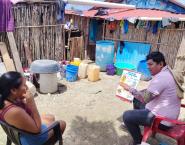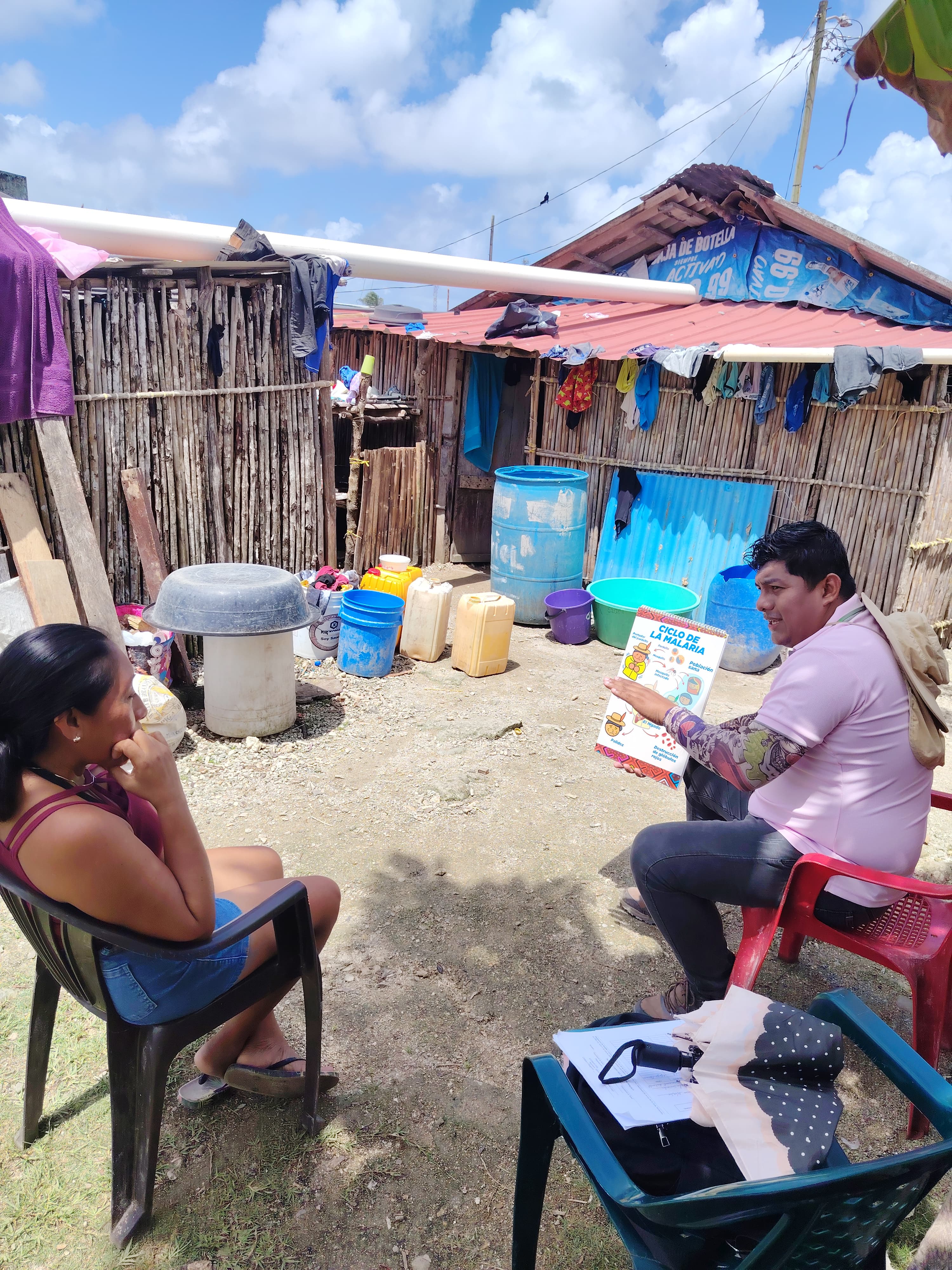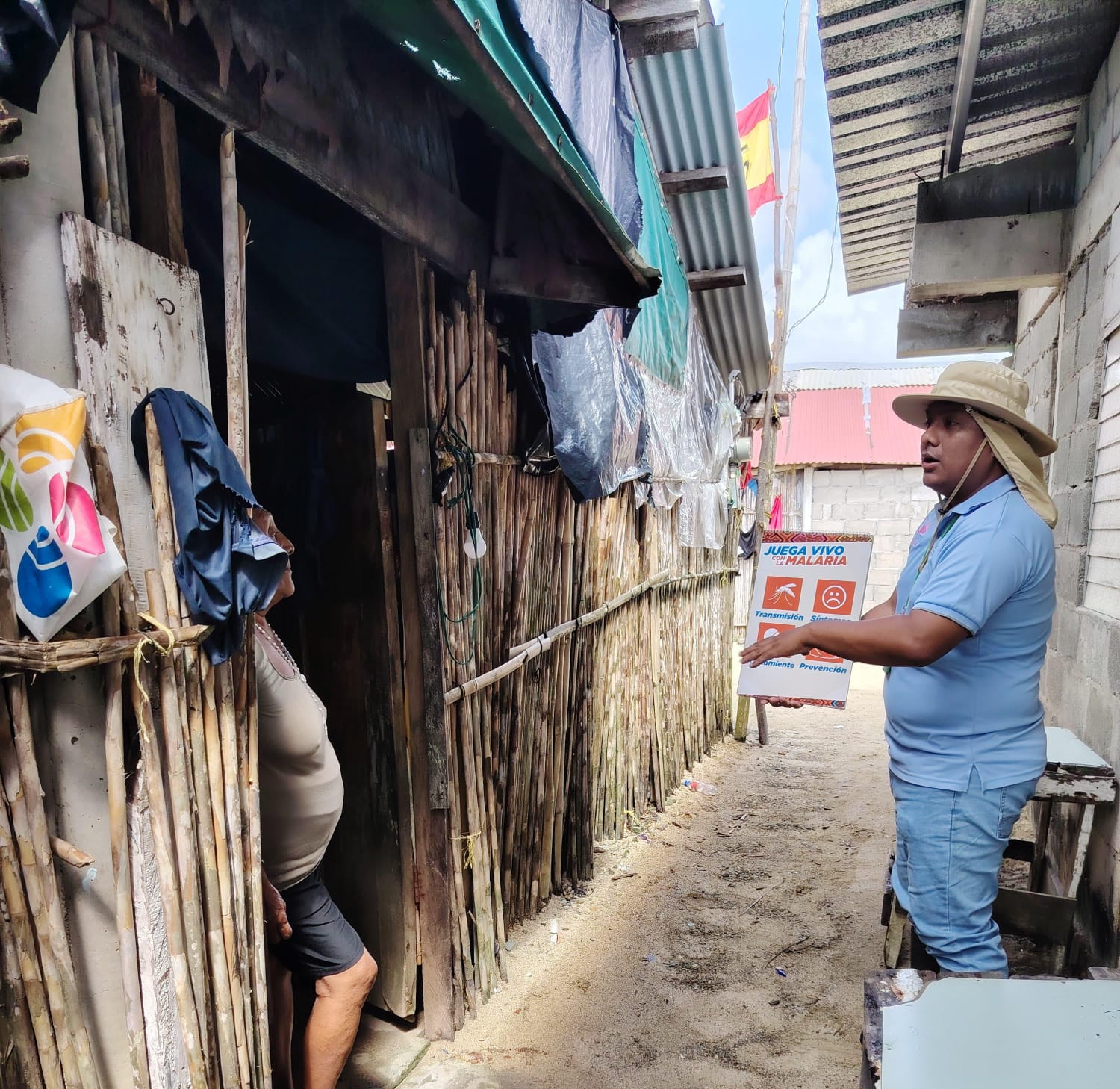 Por otro lado, en la comunidad de Narganá, el personal de saneamiento ambiental realiza visitas domiciliarias a familias para orientarlas en medidas de prevención contra la malaria, utilizando herramientas de educación específicas.