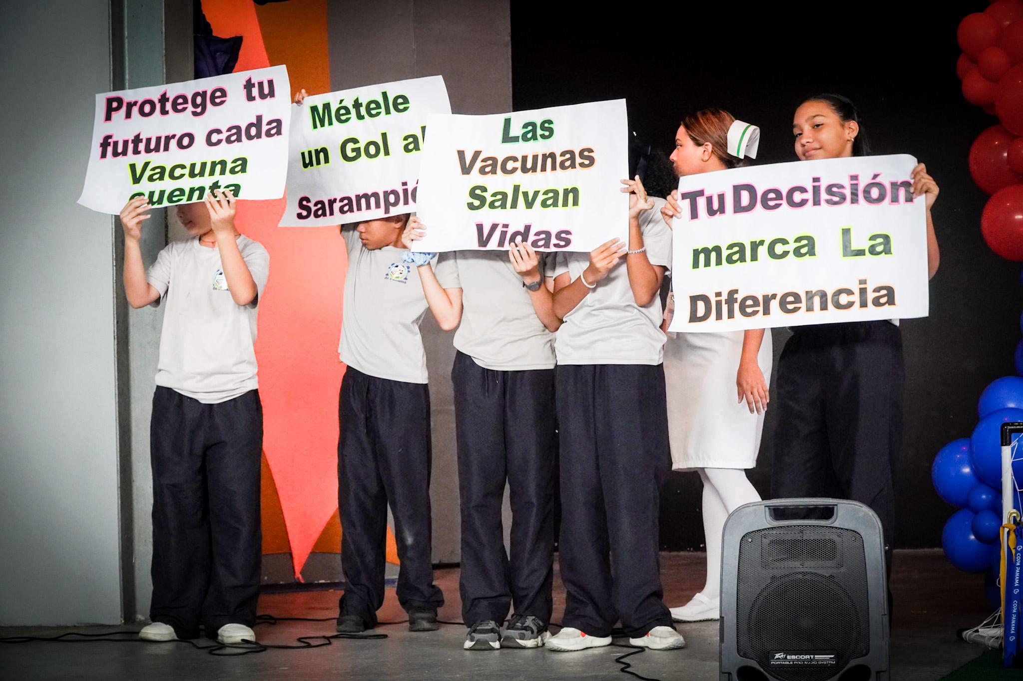 Bajo el lema “Tu decisión marca la diferencia” #métele un gol al sarampión, por la sele del futuro; se realizó una dramatización con estudiantes del plantel educativo alusiva a vacunarse y evitar las enfermedades emergentes, al igual que una declamación sobre el tema.