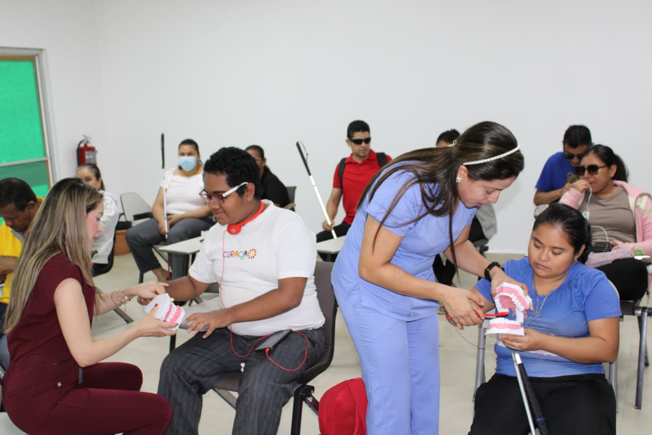 Las Dras. Némesis Márquez y Elsy Jeréz ofrecieron docencia en salud bucal y técnicas de cepillado, acompañadas de la entrega de muestras de enjuagues y pastas dentales. Asimismo, se impartieron orientaciones sobre los requisitos para la obtención del carné de discapacidad, a cargo de la Dra. Josefina Mosquera.