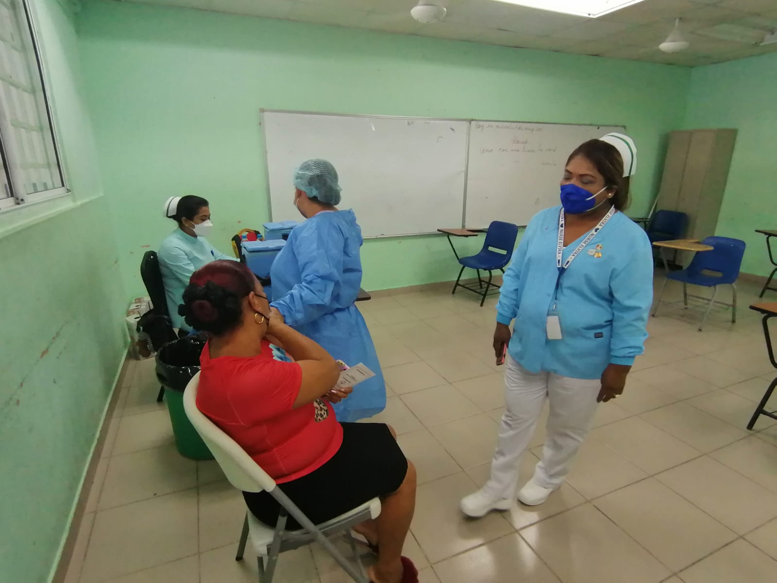 Las personas están acudiendo al Centro de vacunación en la escuela de Nuevo San Juan, área de la transístmica de Colón, a este centro acuden personas que residen en los corregimientos de Buena Vista y Nuevo San Juan; en el mismo se han habilitado seis salones de vacunación, en los que también reciben orientación a la comunidad, que demanda la vacuna contra la Covid-19.